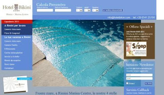 L’unico colore che stacca dalla scala cromatica degli azzurri – sia nella home page che nelle pagine interne – è il color terra del riquadro delle offerte che è situato a sinistra dello schermo: in questo box scorrono pacchetti e promozioni come l’Offerta Capodanno Rimini o il Last Minute SIGEP 2011.